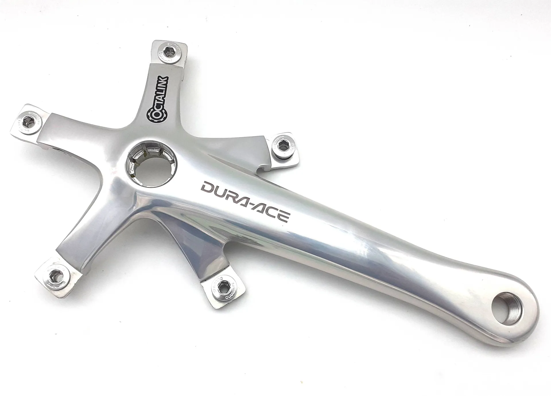 Shimano Dura-Ace 7701 Octalink 172.5mm Crank Arms in Silver NOS Missing RingsLeft and right arms and 5 chainring bolts . but NO rings or main M15 fixing bolt are included