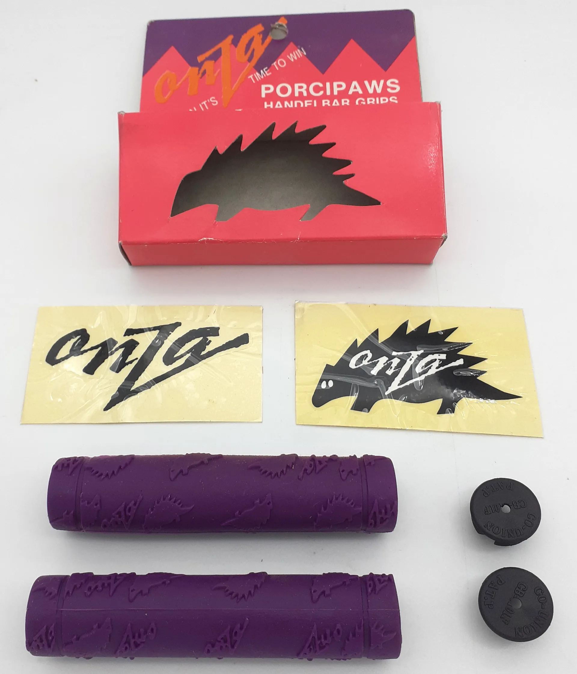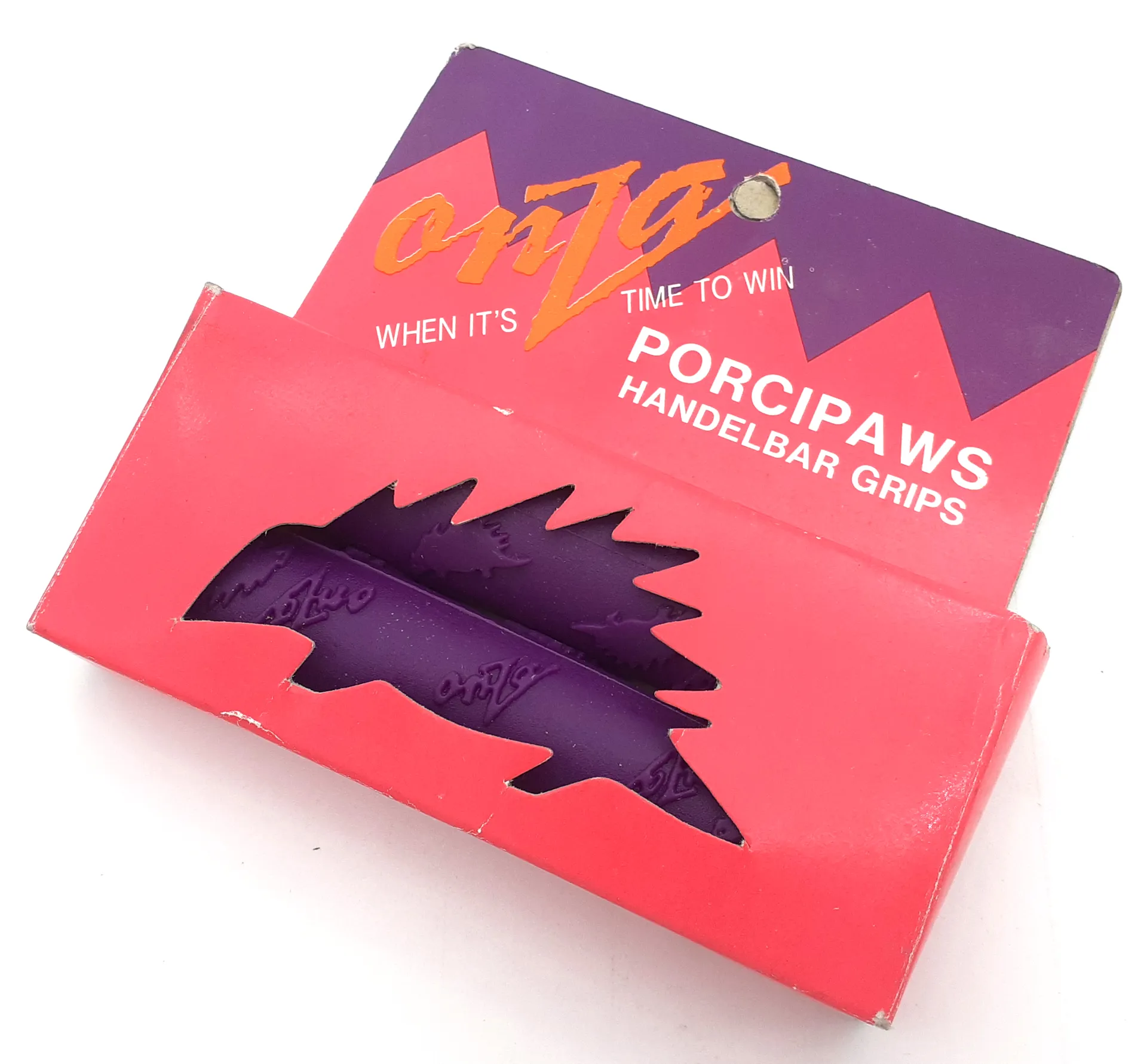 Onza Porcipaws Handlebar Grips in Purple RetroNOS = New Old Stock from the 1990sBrand New In Box with end caps and 2x stickers