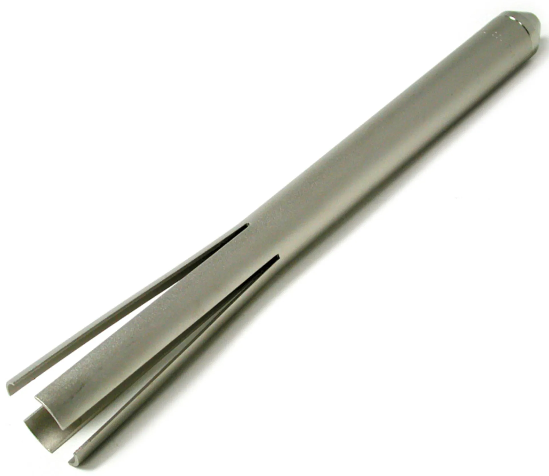 • Pulls through headtube until the flared end snaps open behind the headset cup